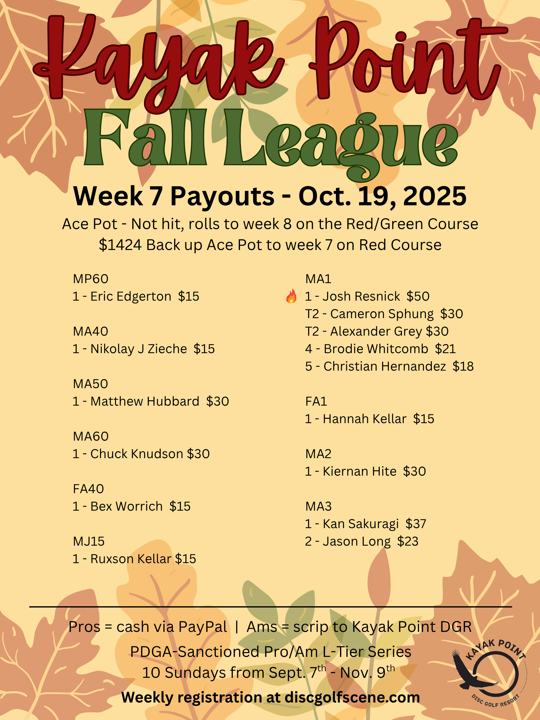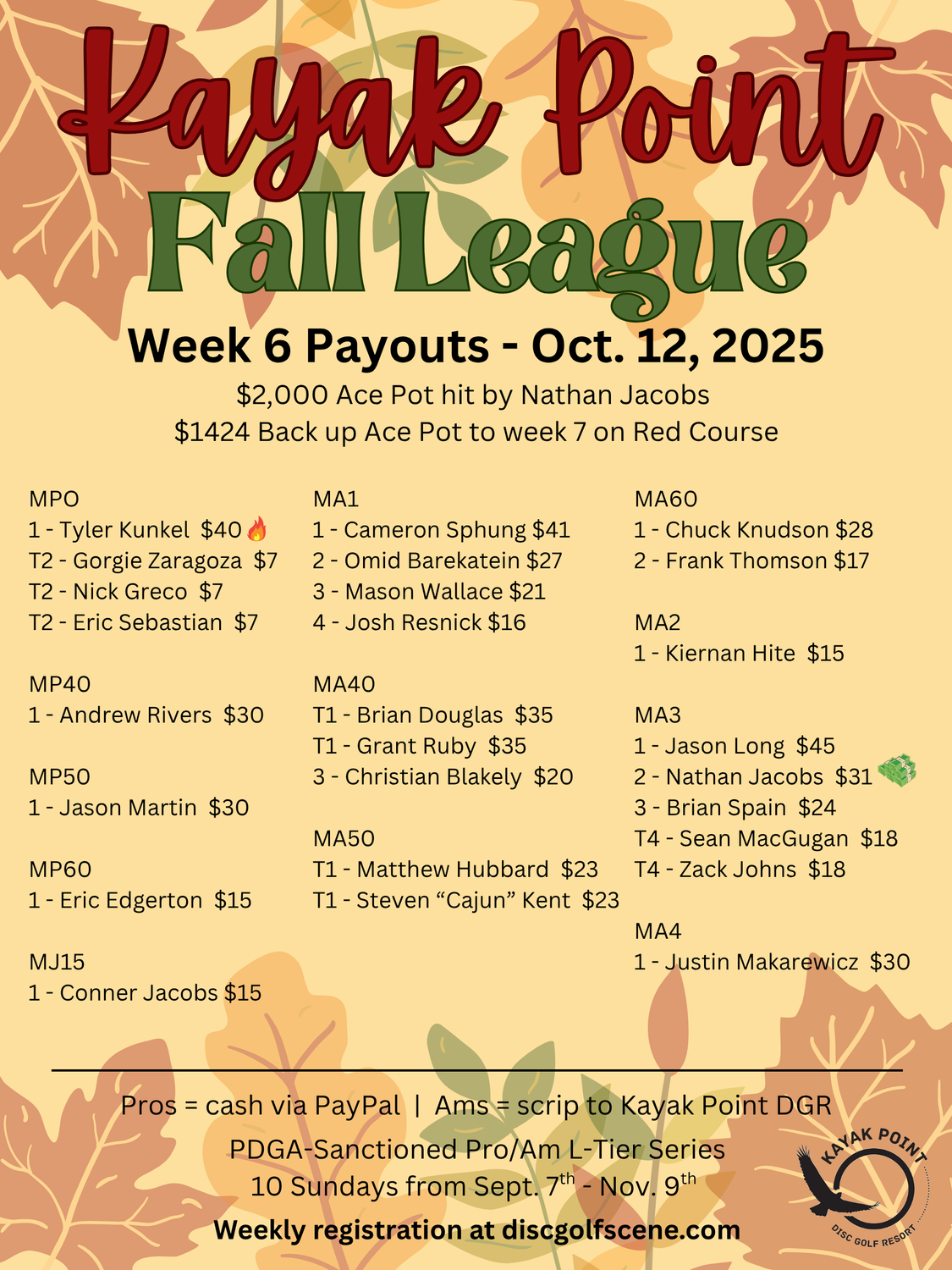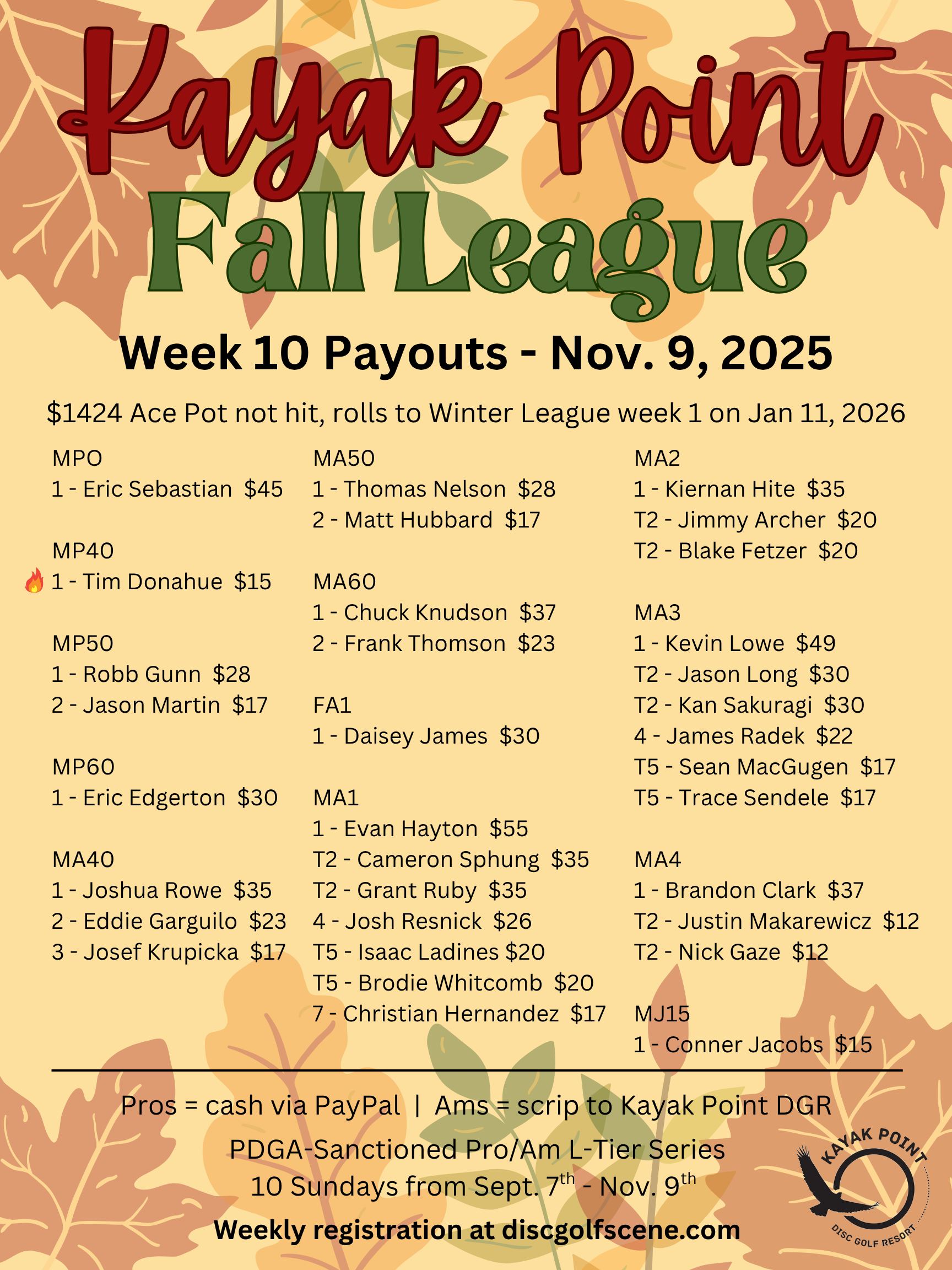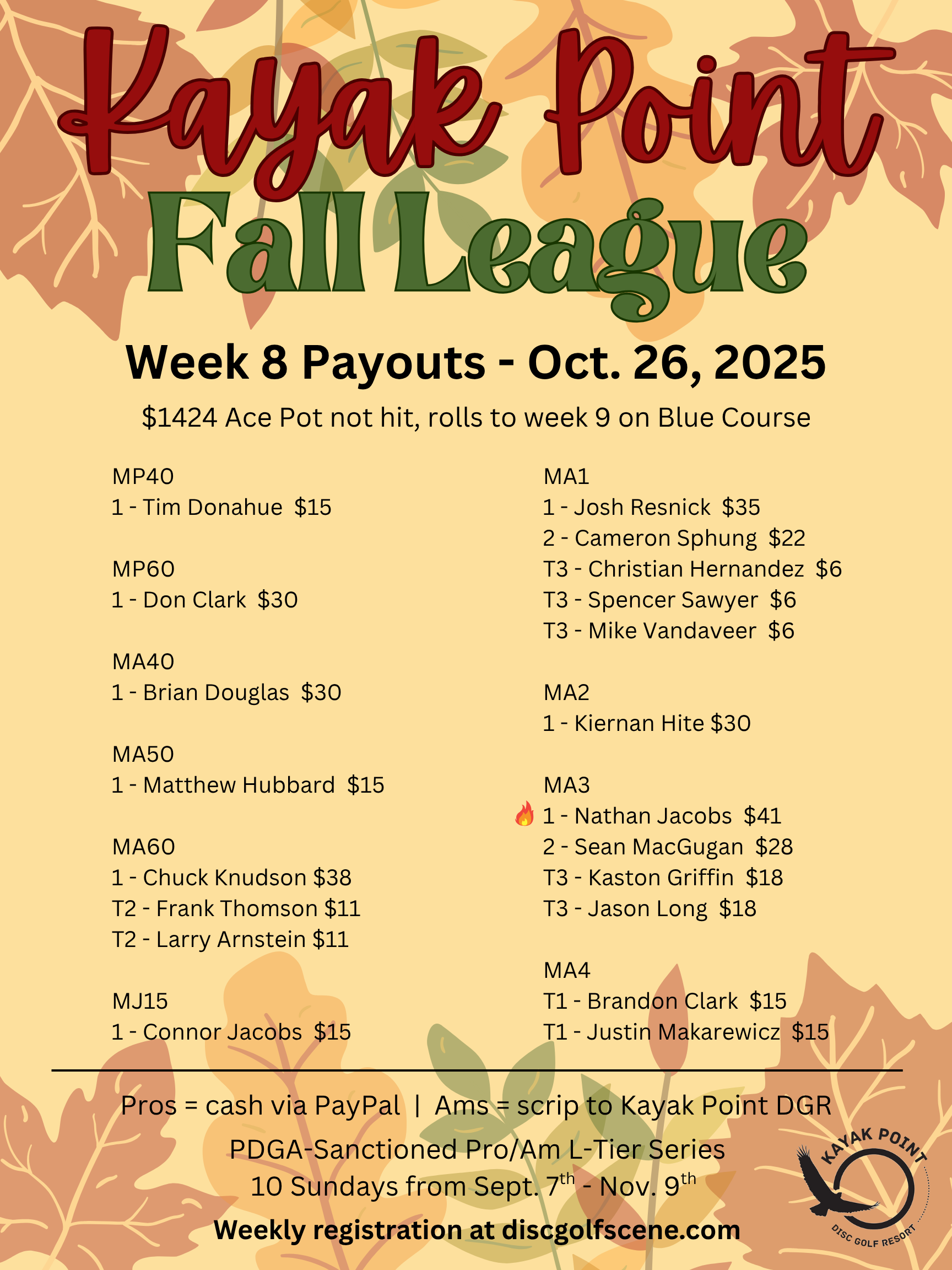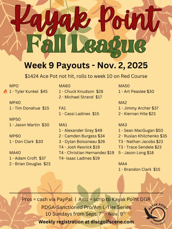 Welcome to the 2025 Fall League @ Kayak Point Disc Golf Resort!